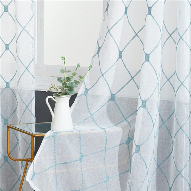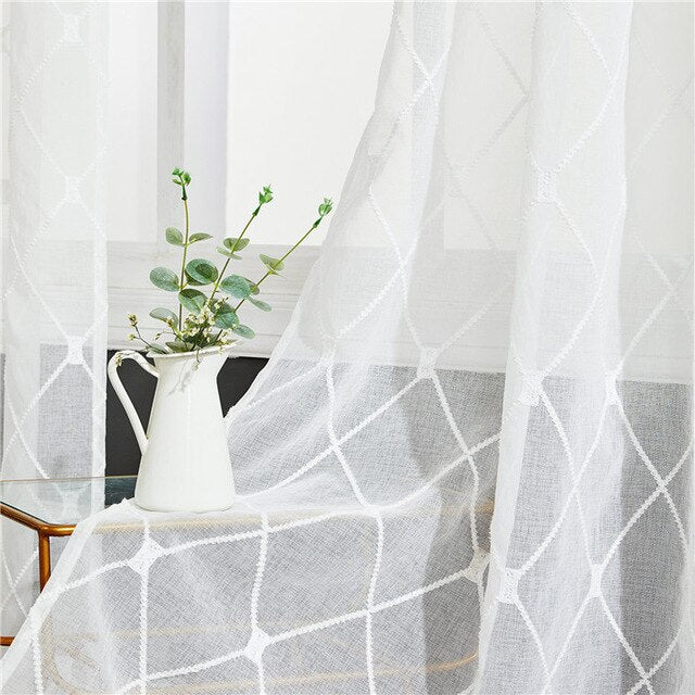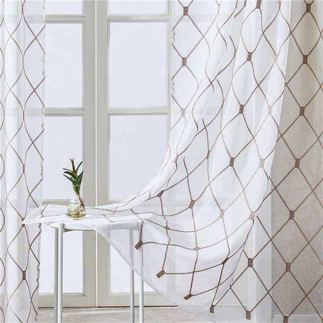 Topfinel Geometric Embroidered Short Sheer Curtains Tulle Window Curtains for Kitchen Living Room Bedroom Voile for Cafe